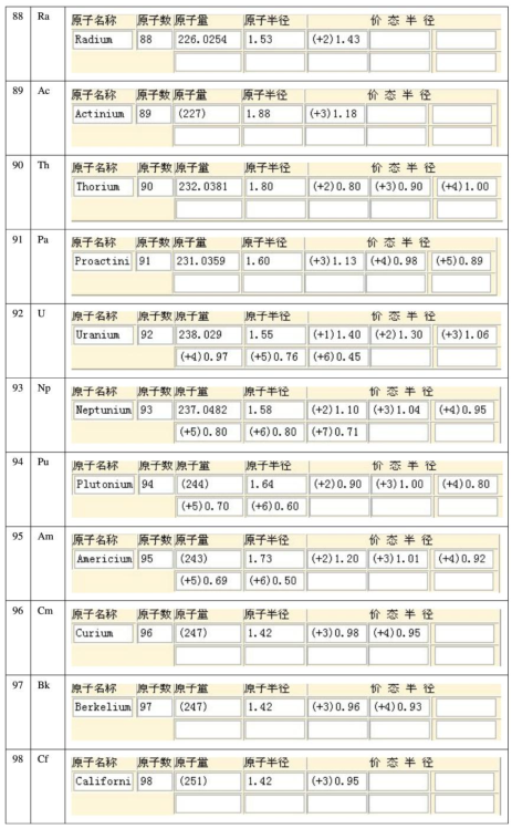 【產(chǎn)品名稱】:原子半徑表