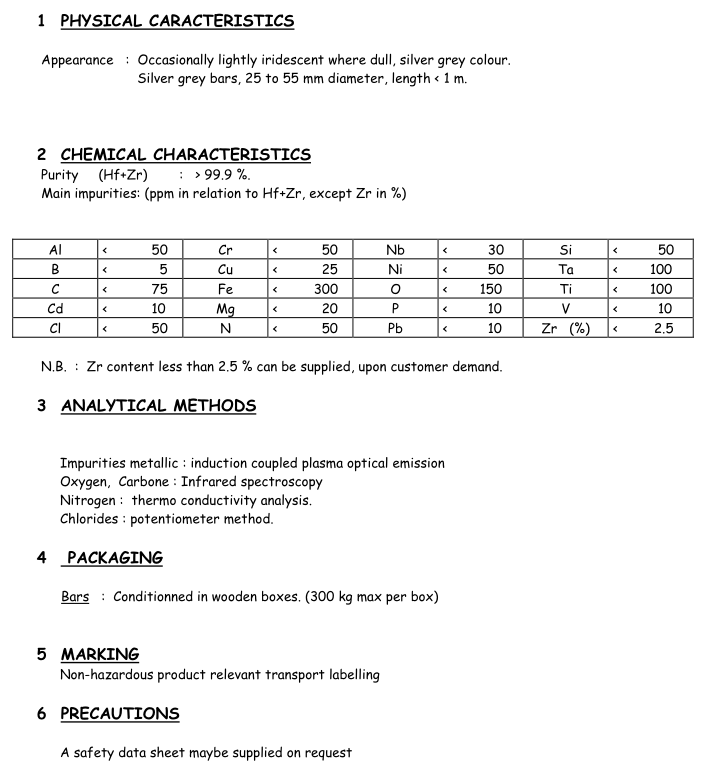 法國結(jié)晶鉿指標(biāo)